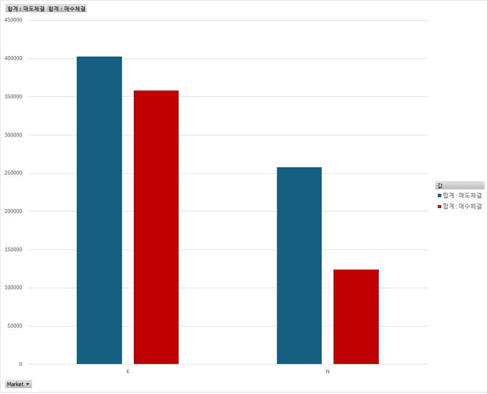 우선 재미있는 것부터 한번 보고 싶다. 260313일의 K는 KRX 매매, N은 Nextrade비중이다.