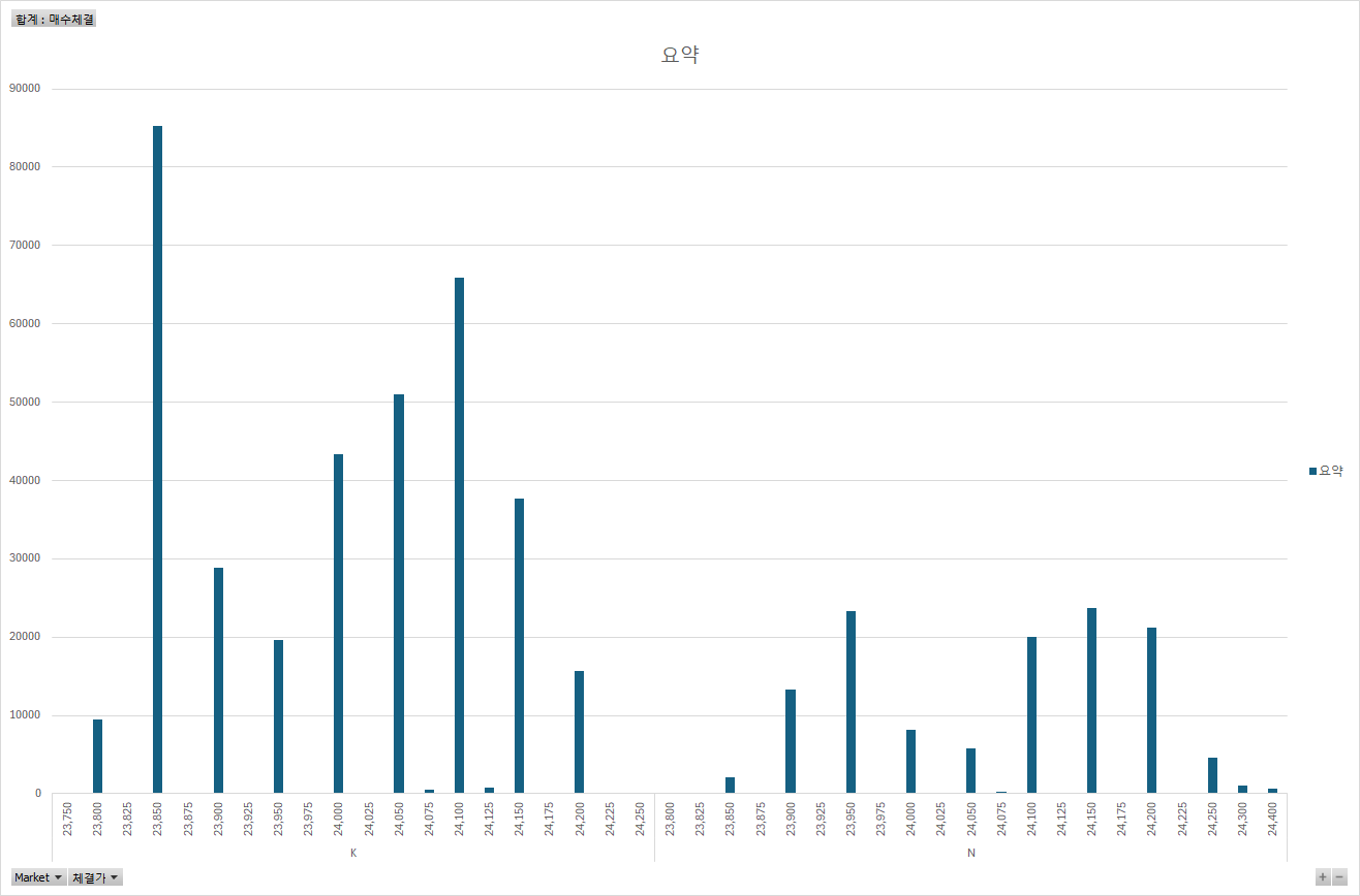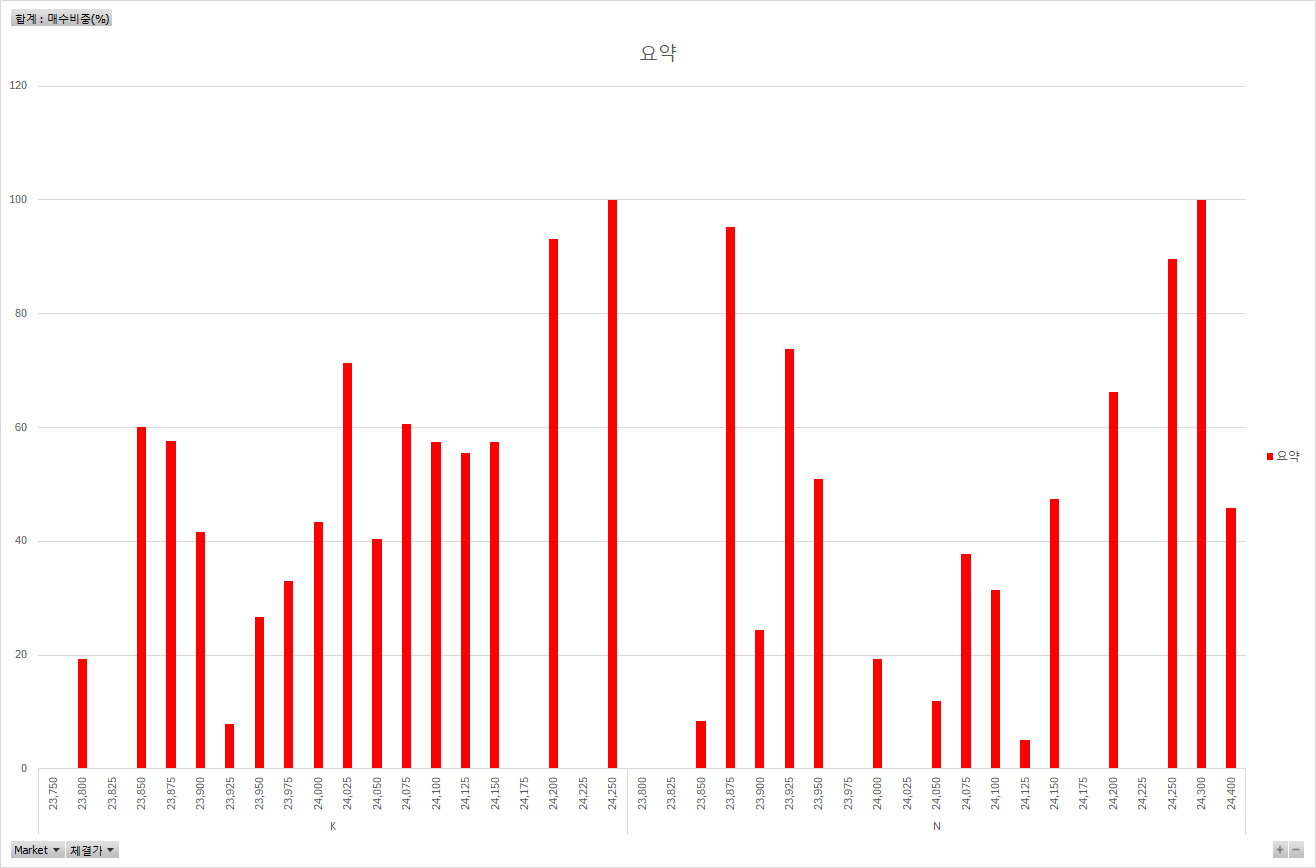 다만, 하나 확실한 거는 23,850원의 가격대에 매수 비중이 60%인데 반해 가장 많은 매수 체결이 이루어 졌다라는 것은 그 가격대가 오늘의 지지대 였고, 오늘의 ‘목표 가격’일 가능성도 크다.